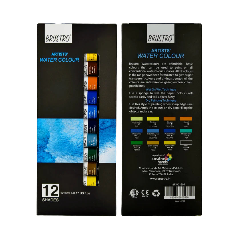 Showcase your creativity with the Brustro Artist’s Watercolour Paint Set – a curated selection of 12 richly pigmented colours in 5ml tubes, ideal for artists who value quality, transparency and expressive versatility.