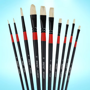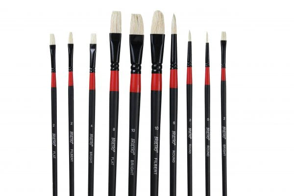 BRUSTRO Artists White Bristle Set of 10 Brushes for Oil and Acrylic