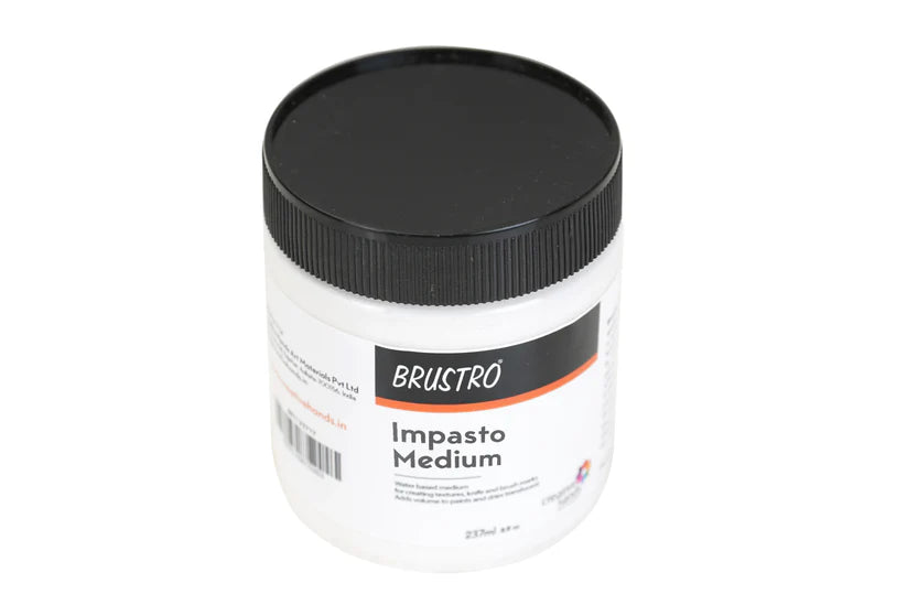 - Water based medium for creating textures, knife and brush marks. Adds volume to paints and dries translucent.