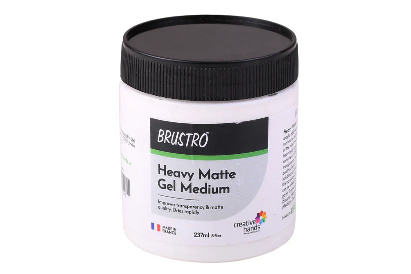 Brustro Thick Matte Gel Medium is an acrylic additive used for retaining the tool marks and getting perfect imprint of the relief created, Brustro Thick Matte Gel Medium is thicker than heavybody acrylics. It adds to the consistency of the paints. It improves transparency, depth and matte quality of acrylic colours. It is water soluble and dries rapidly. Once dried, it is translucent and water-resistant. It can be added in any proportion to the paint. To obtain satin effect, mix with thick gloss gel medium. Does not crack on drying.