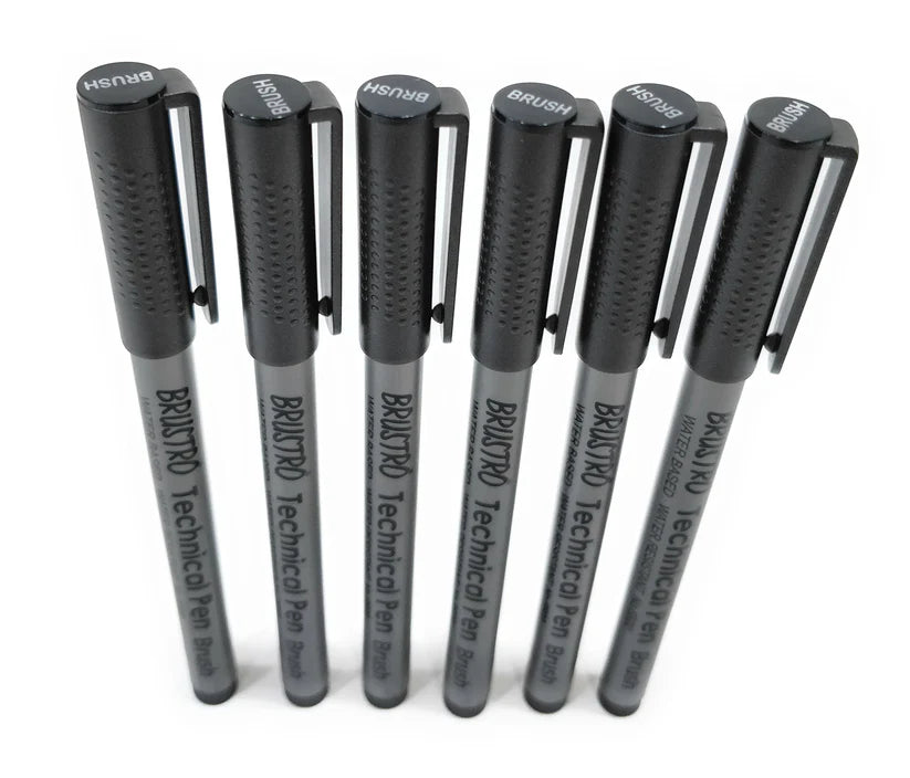 - Pack of 6 pens of nib size Brush . Highly compatible with Brustro Ultra Smooth Bristol 250 GSM .