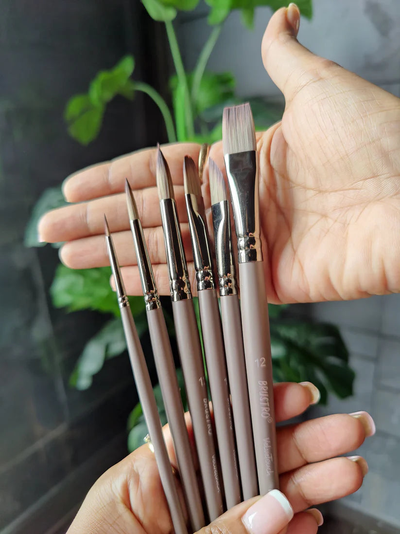 BRUSTRO VelveTouch Artist Brushes Set of 6 for Gouache, Acrylics, Watercolor, and Oil Painting
