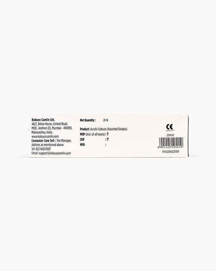 Camel Acrylic Colours Assorted pack of 24 shades in 10 ml