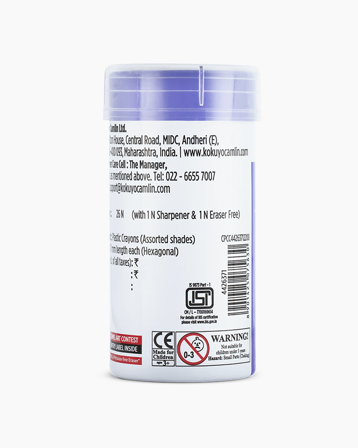 Camel Plastic Crayons Assorted tin pack of 26 shades, Hexagonal