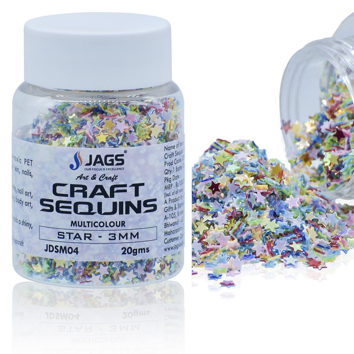 Jags Craft Sequins Multi Colour 20GMS Star 3MM JDSM04