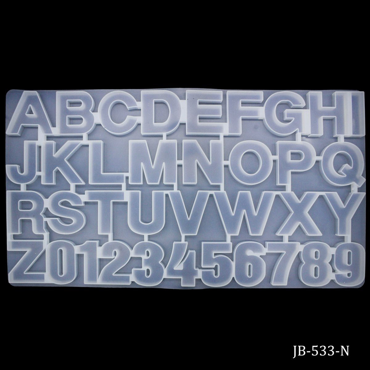 1. Material: Silicone. Approximate ABCD Mould Size: 36.5X19.5 cm. Alphabet & Number Size 1, 1.5 to 2 Inch. This silicone moulds for resin has 26 Alphabets letters and 10 numbers.