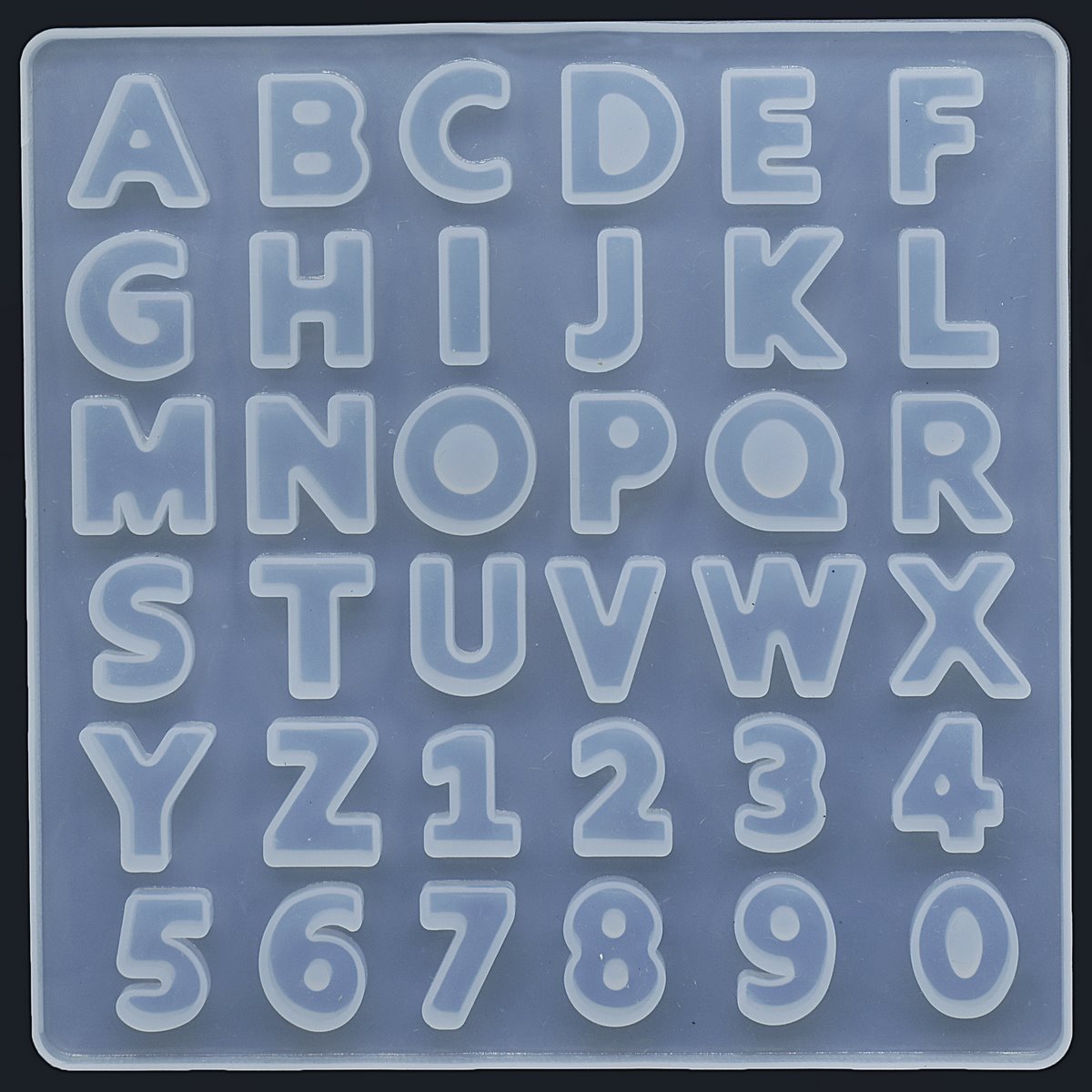 1. Material: Silicone. Approximate ABCD Mould Size: 13x13x0.5 cm. Alphabet & Number Size 0.5 to 0.75 Inch. This silicone moulds for resin has 26 Alphabets letters and 10 numbers.